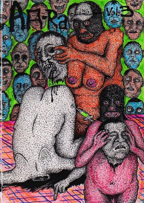 Au sommaire des bandes dessinées, illustrations, collages et autres xylogravures par une équipe franco-japono-mexicano-australienne constituée de Äki Späghetti, Xavier ‘Rekkaen’ Gillard, Olivier Voyou, Mimieux92, Abraham Díaz, Antipathic, Suka Mabuk, Maronasty, Bikesabbath, Lashka, Lia Vé, Ratcharge, Brigade Cynophile, Ryock et Hugues “La Blanche”. Le tout imprimé en riso et photocopie couleur + NB, enrobé dans une couverture ô combien familiale de Yecatl Peña.